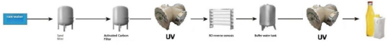 Process advantages: Purely physical and green disinfection method, controlling microorganisms throughout the entire process; preventing microbial contamination of the RO system, reducing cleaning frequency, and extending membrane service life; in dairy beverage applications, it can replace water pasteurization and reduce operating costs.