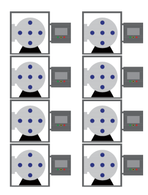 The controller continuously monitors UV system functions, including safety conditions. Critical and non-critical alarms are generated based on these safety conditions. Critical alarms shut down the UV lamps and drivers. The intuitive 7” touch screen HMI allows the operator to easily configure a variety of settings. The HMI screen displays the status of individual lamps, including detailed parameters.