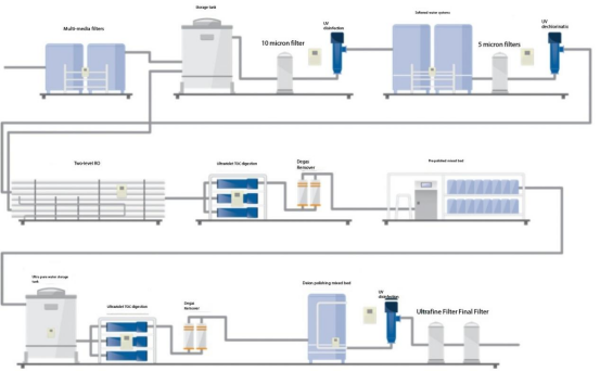 Application and advantages of ultraviolet light to remove TOC in ultrapure water process